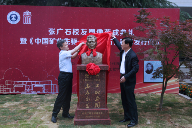 张广石校友塑像落成典礼暨《中国矿业先驱——张广石》新书发行仪式在矿业学院楼门前举行。