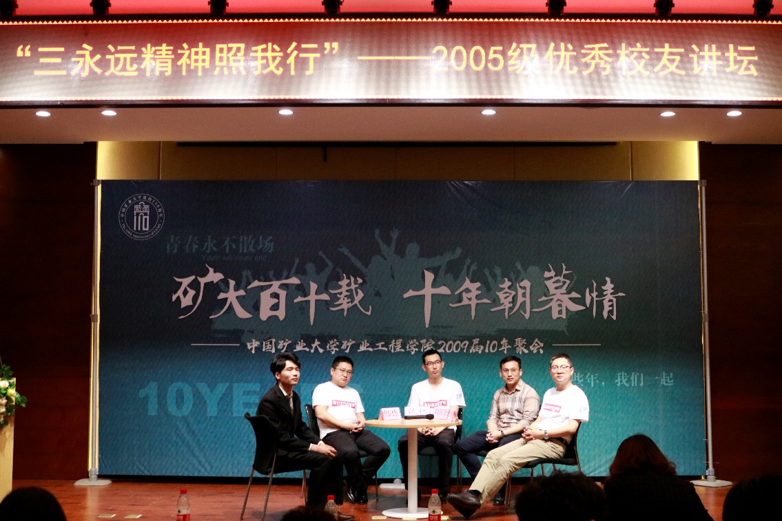 计划举办“三永远精神照我行”优秀校友论坛系列活动。本期论坛作为第一期论坛,邀请到场的各位杰出校友作为学院09届毕业生,他们既是矿大第一个百年培养的最后一批能源人才,又是矿大在新的百年走向社会的资源精英。十年前,他们牵头学校30名到西部基层就业的毕业生,给时任国务院总理温家宝写信,表达了自己愿意到祖国最需要的地方去建功立业,愿意将自己的专业知识和祖国的需要结合在一起,愿意在平凡岗位上创造不平凡的业绩。他们的行为受到了温总理充分肯定,温总理亲自回信“同学们,基层艰苦地方需要你们,那里大有可为,希望同学们努力奋斗”。十年里,他们作为能源科技的尖兵,见证了煤炭工业化的科学、跨越和转型发展,十年转瞬,在“三永远”的采矿精神一直激励下,他们也一步一个脚印地成长,许多人已经成为了行业的中坚力量,不少人已经走上了领导岗位,为祖国的能源事业贡献了自己最好的青春年华。
