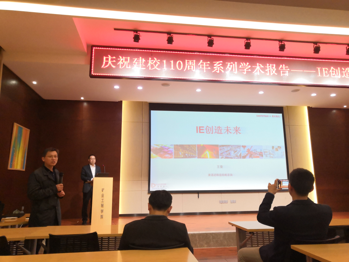 建校110周年之际,工业工程系在矿业学院报告厅A604举办主题为IE创造未来的学术报告。王奎老师为此次汇报主讲人,工业工程系主任李乃梁老师、任海兵老师、李玉鹏老师、李贤功老师,段天宏老师出席以及部分本科生和研究生参加了本次报告。