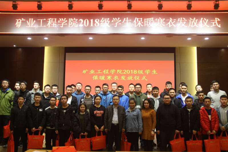 12月3日下午,我院于矿业楼A604举办了18级学生保暖寒衣发放仪式。院党委副书记畅军亮、18级辅导员何伟民老师、18级少数民族预科班辅导员热汗古丽·伊敏老师共同为受助的18级本科生、预科生发放了新一系品牌的保暖秋衣。