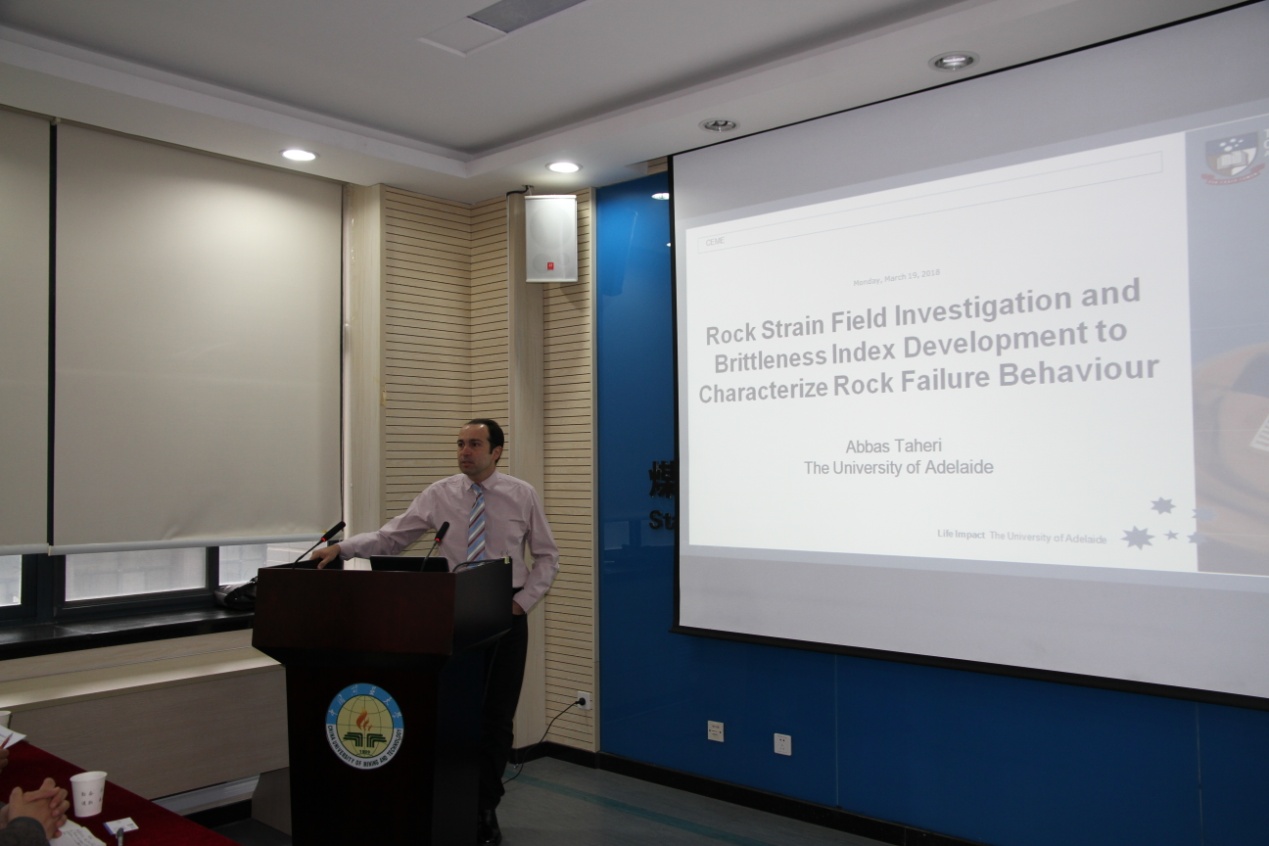 澳大利亚阿德莱德大学Abbas Taheri副教授、我室何青源副研究员应邀分别作了题为“Post-peak and Localization Characteristics of Rocks to Study Performance of Underground Excavations”和“Controlling Hydraulic Fracture Propagation Trajectories by Prescribed Hydraulic Fracturing”的学术报告,与会学者就岩石力学属性测试、水力压裂裂纹扩展轨迹定向控制及胶结充填材料特性等内容进行了热烈的交流。
