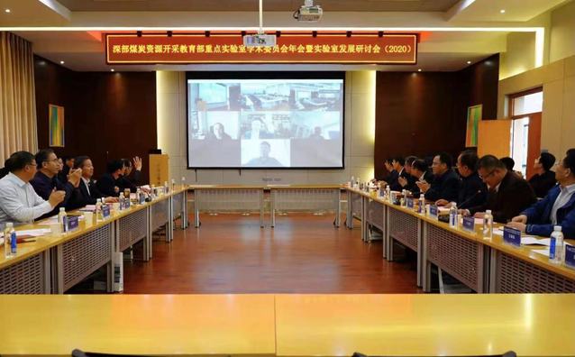 3月27日,深部煤炭资源开采教育部重点实验室(以下简称“实验室”)采用线上、线下结合的方式召开了2020年度学术委员会会议。实验室学术委员会主任袁亮院士、康红普院士、张农教授、刘泉声教授、李树刚教授、屠世浩教授、谭云亮教授、窦林名教授、马念杰教授、杨天鸿教授、薛俊华教授等全体委员,副校长周福宝,科学技术研究院副院长曲颂,矿业学院党委书记陈新忠、院长张吉雄、副院长万志军、马立强,以及实验室负责人与研究骨干等参加了会议。
