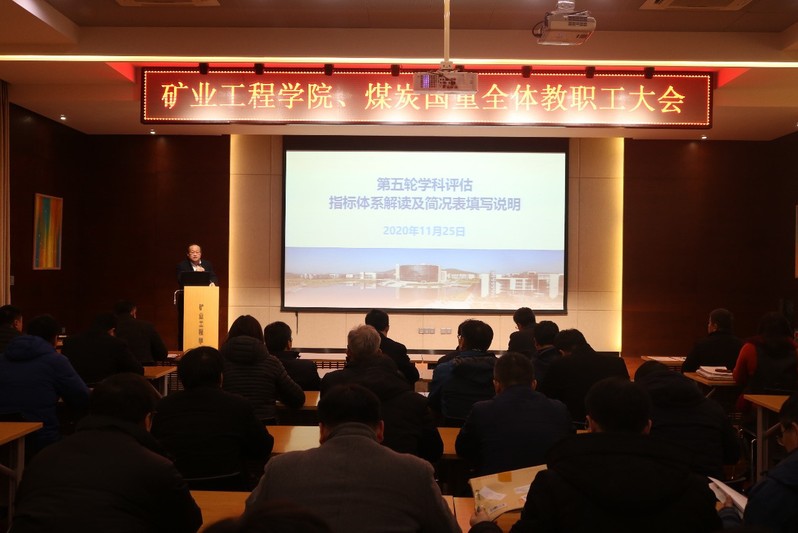 会上,马立强副院长介绍了学校对第五轮学科评估的相关准备工作,并从政策导向、第四轮学科评估结果、第五轮学科评估指标体系、学科评估简况表填写等方面对学院矿业工程学科第五轮学科评估工作进行了布置。高世杰副书记宣读了学院各系(所)、平台、实验中心负责人新一轮聘任结果。