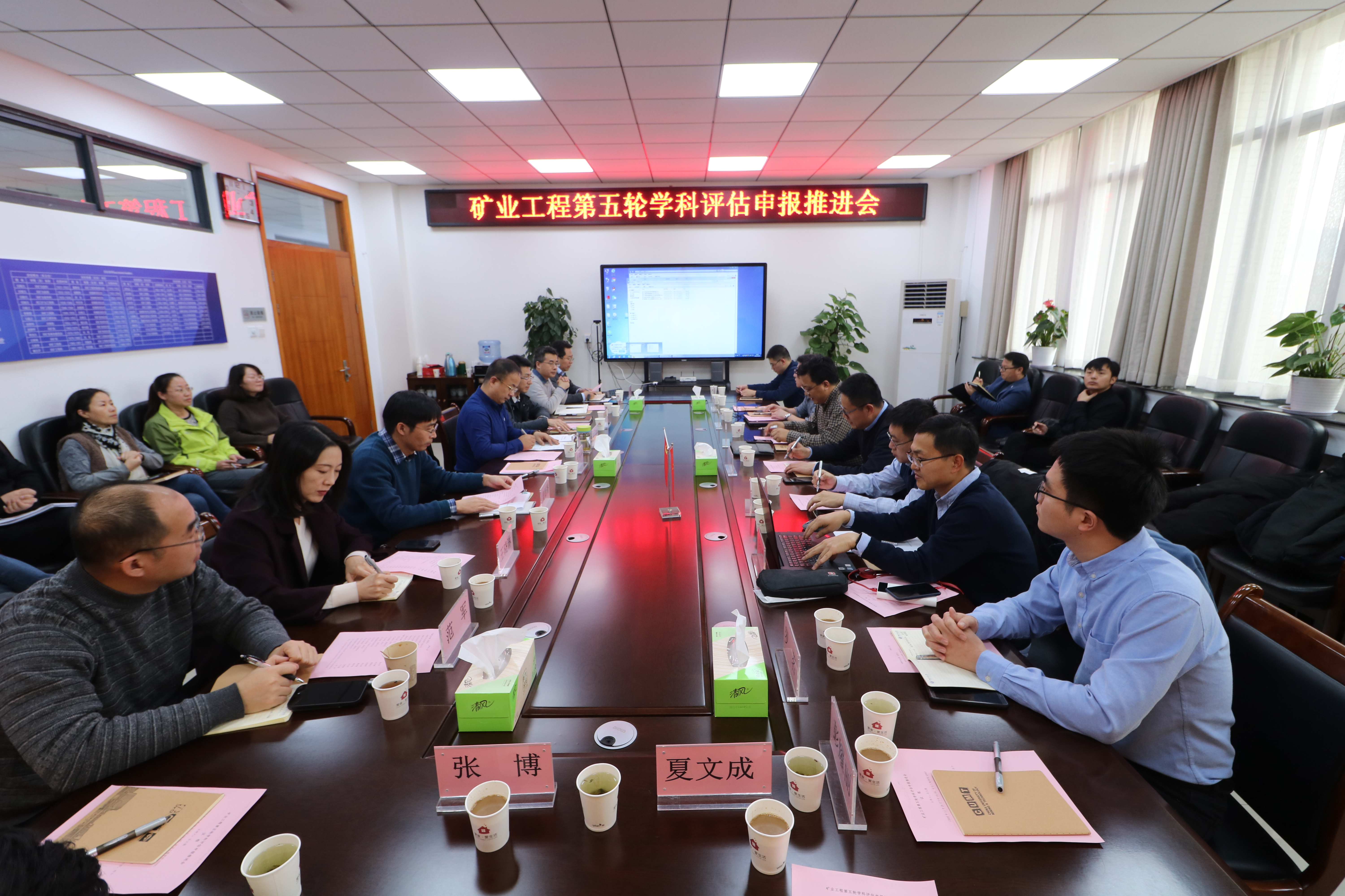 与煤炭国重班子成员张吉雄、黄炳香、王晓琳、万志军、马立强、范军,化工学院院长张海军、矿物加工系负责人和相关老师,我院参与学科评估工作的系所、平台、机关科室负责人和相关老师共同参与了推进会。我院副院长马立强主持推进会。