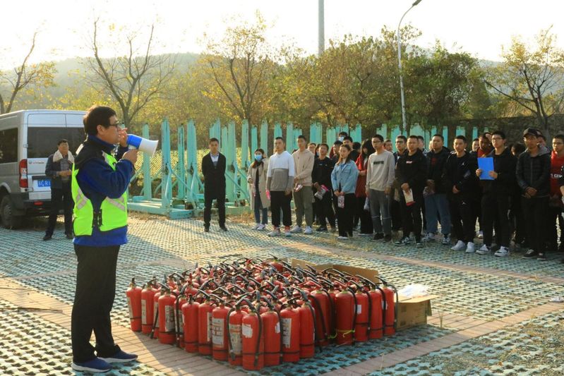 演练现场,保卫处申老师首先介绍了火灾发生后具有火情蔓延迅速、烟雾浓毒性大、扑救难度大、人员疏散困难等特点,接着他介绍了防火要领、干粉灭火器的使用方法、火场自救等安全常识,并现场演示了干粉灭火器操作方法。随后参与演练的全体教职工和学生安全员分组进行灭火器的实际操作演练。大家纷纷表示,通过学习消防知识与动手实践,不仅掌握了灭火器的使用方法,还提升了应对初期火灾的能力。