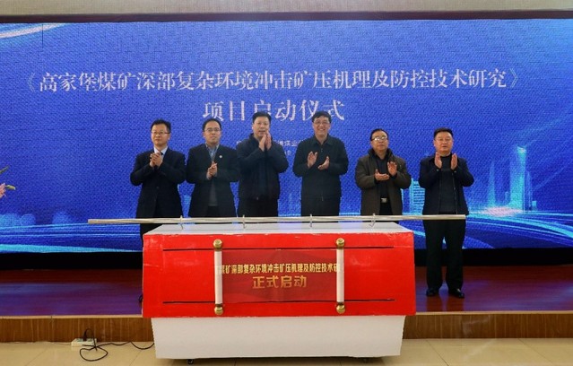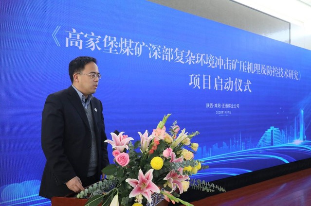 副校长周福宝、山东能源淄博矿业集团副总经理黄书翔、咸阳市煤炭工业局局长侯军利、咸阳市科学技术局局长张璞波、长武县人民政府党组成员副县长任皓、陕西正通煤业有限责任公司执行董事、总经理刘业献等领导出席仪式致辞,并共同按下启动按钮。项目负责人窦林名教授对项目整体实施方案进行了汇报,各课题负责人分别对本课题研究内容、研究进展及相关研究计划等方面进行了详细汇报。