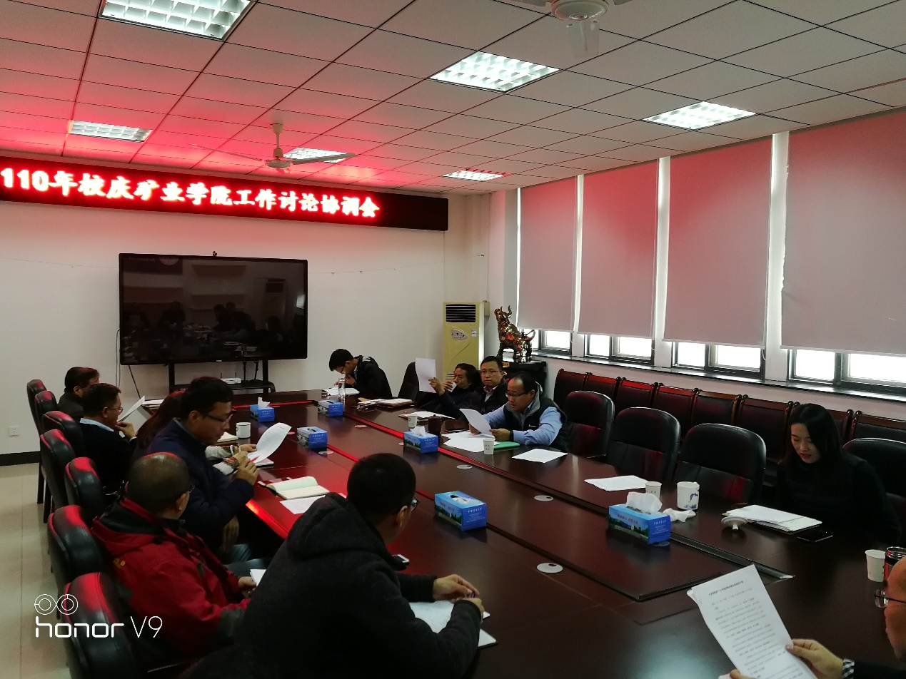 建校110周年庆祝活动筹备方案》的通知,传达了校庆工作相关文件精神。他指出,通过建校110周年系列庆祝活动的举办,总结过去、立足当下、面向未来,激发学院师生员工的自豪感、责任感和使命感,凝聚共识、强本拓新,加快推进世界一流矿业学科的建设步伐,为早日实现世界一流研究型矿业学院和国际矿业人才培养中心的建设目标而努力奋斗。他要求全体教职工积极参与到校庆工作中来,把校庆活动作为学院一项重点工作来抓。通过本次讨论协调会,广泛听取各系所、支部和职能科室的建议,集思广益,群策群力。