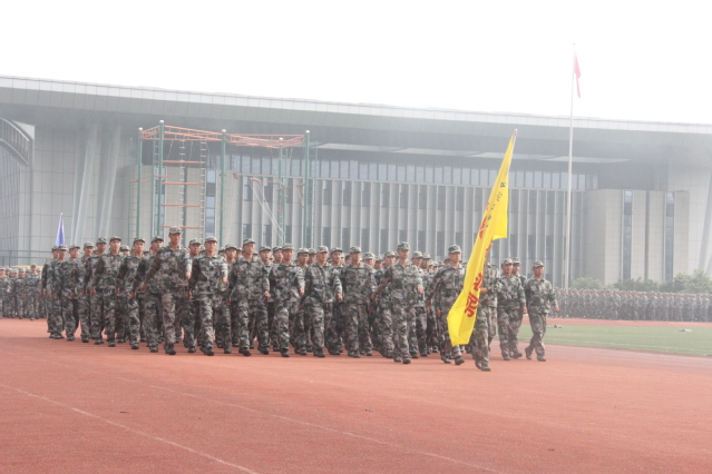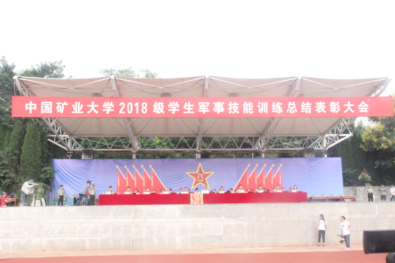 在东坡运动场召开2018级新生军训总结表彰大会。徐州军分区副司令员齐洪俊大校,73087部队政治工作部主任周林中校,泉山区武装部屈龙中校,校长葛世荣,学生军训旅政委、校党委副书记曹德欣,学生军训旅旅长、副校长周国庆,各学院主要负责人、军训旅组成单位负责人和各学院党委副书记出席了大会。承训部队80余名官兵、2018级新生辅导员和5500余名新生参加了大会。大会由校党委武装部部长、学生军训旅参谋长黄军利主持。