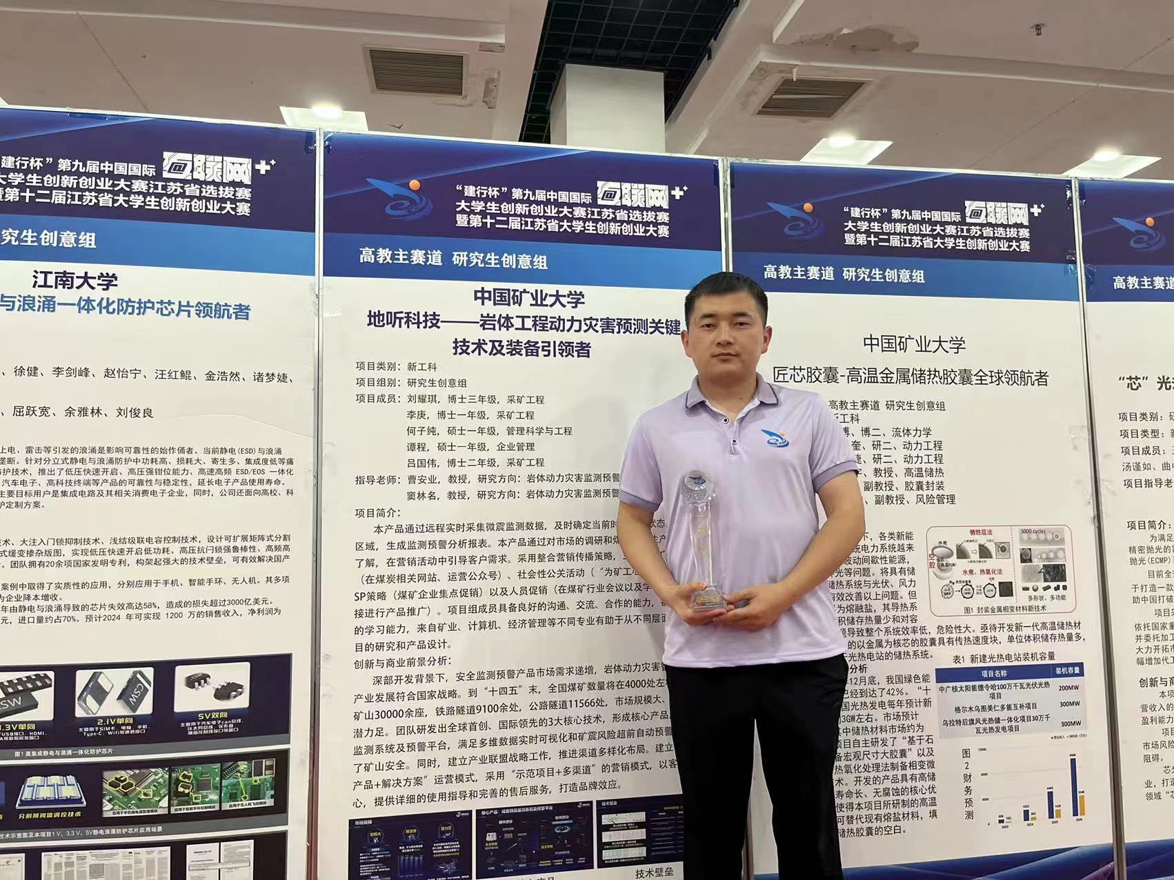 7月16日-7月20日“建行杯”第九届中国国际互联网+大学生创新创业大赛江苏省赛在南京林业大学隆重举行。我院荣获一等奖1项、二等奖1项、三等奖1项,指导教师曹安业等获“优秀指导教师”称号。采矿工程博士刘耀琪为负责人的“地听科技——岩体工程动力灾害预测关键技术及装备引领者”团队斩获高教主赛道研究生创意组一等奖。
