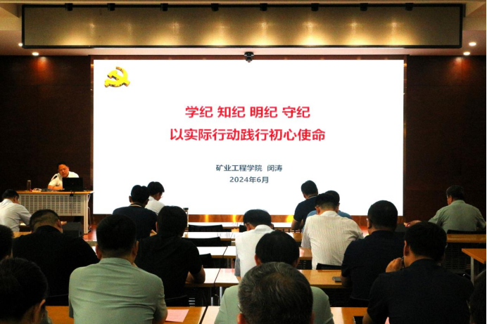 在学院楼A604开展《学纪知纪明纪守纪,以实际行动践行初心使命》党纪学习教育专题党课。学院党委书记闵涛主讲,学院全体教师共同参加。