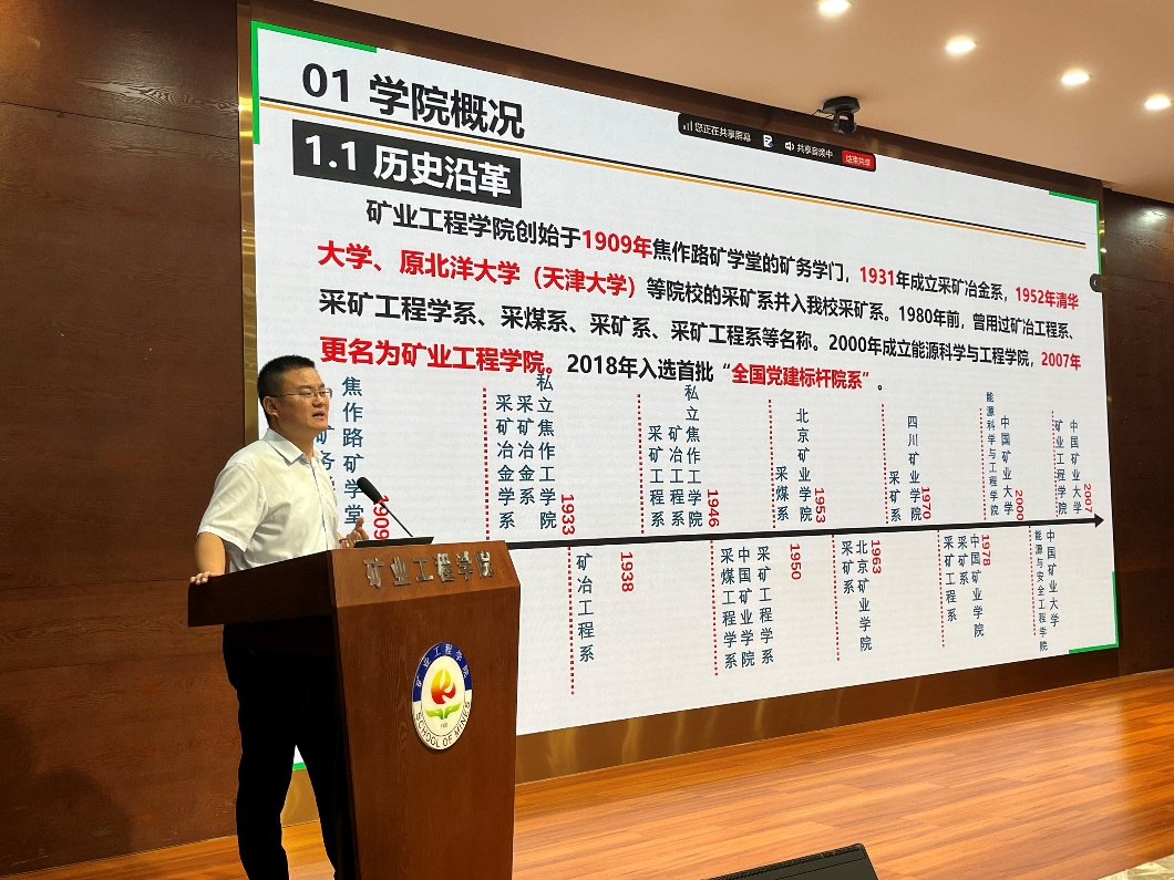 于学院楼A604报告厅举行2025级新生家长见面会。学院院长黄艳利、党委副书记高世杰、采矿工程系主任范钢伟、智能采矿工程系系主任张强、新能源科学与工程系系主任张源、工业与系统工程系系主任李玉鹏参加会议,见面会由高世杰主持。