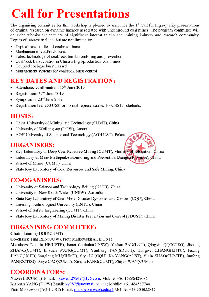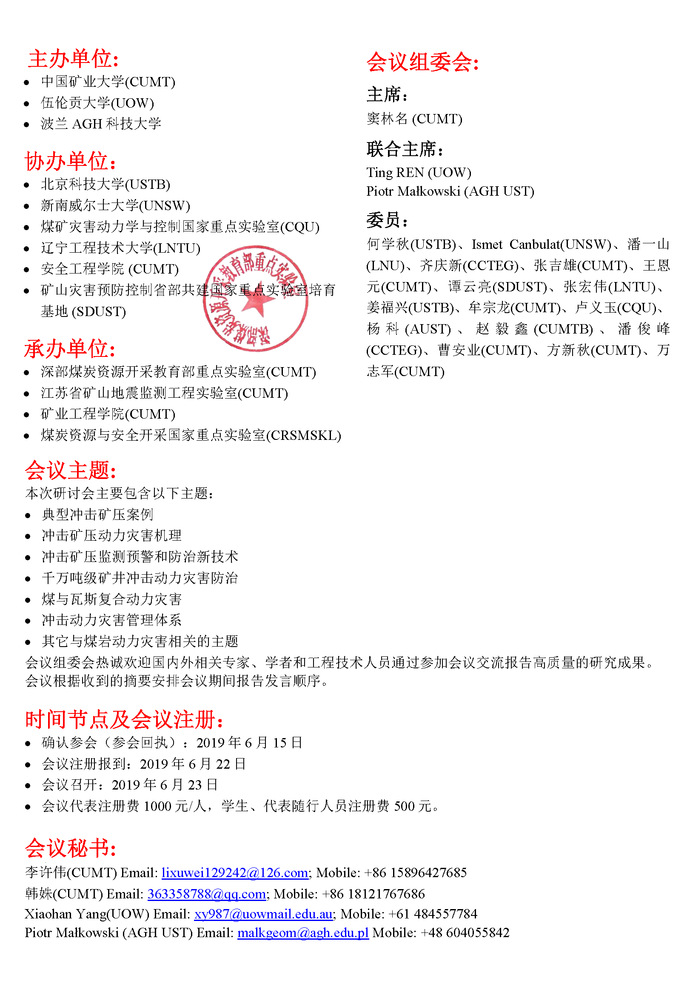 熟女av公告 熟女av - 熟女av公告 - 正文 第四届煤岩动力灾害国际研讨会(第三轮) 作者:董成亮浏览:时间:2019-06-19 回执表.docx回执表.docxConfirmation.docx 新闻来源:熟女av 摄影: 责任编辑: 审核: