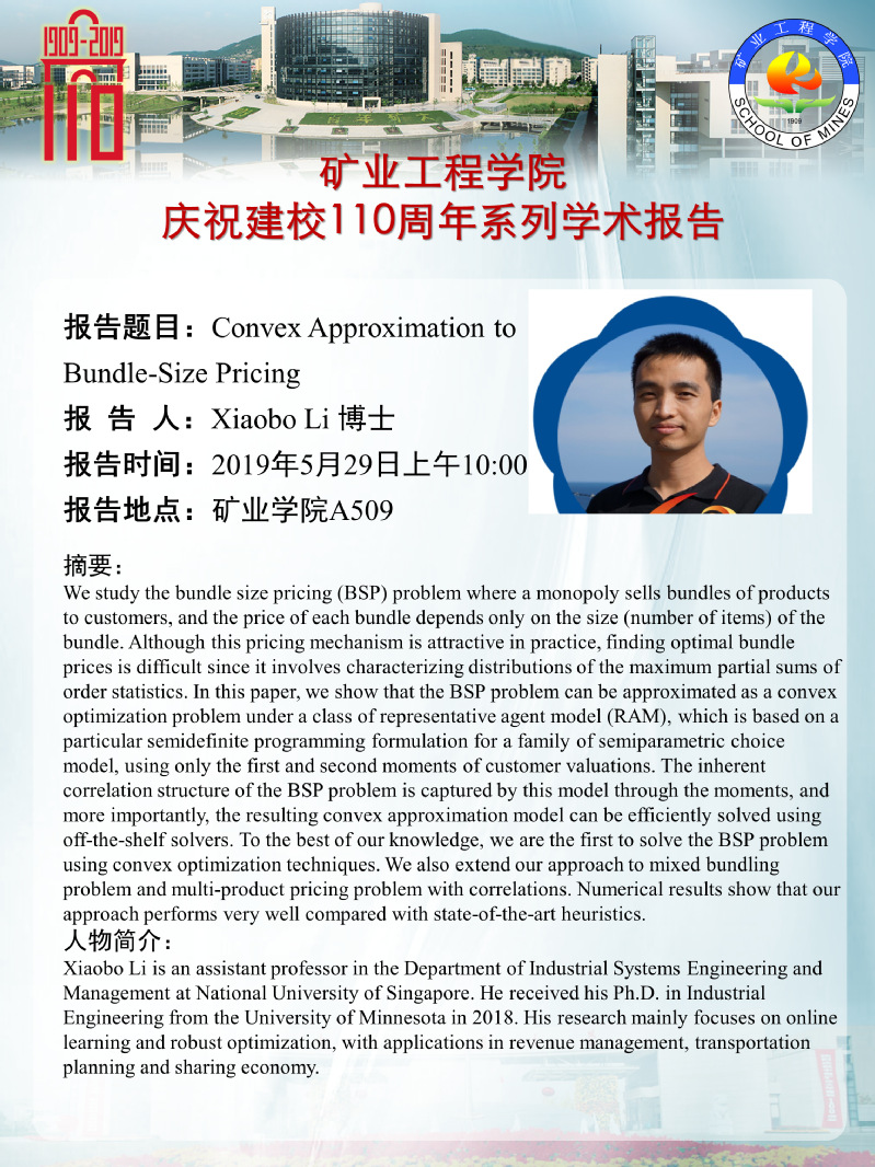 学术会议 熟女av - 学科动态 - 学术会议 - 正文 学术报告:Convex Approximation to Bundle-Size Pricing 作者:董成亮浏览:时间:2019-05-27 新闻来源:熟女av 摄影: 责任编辑: 审核:
