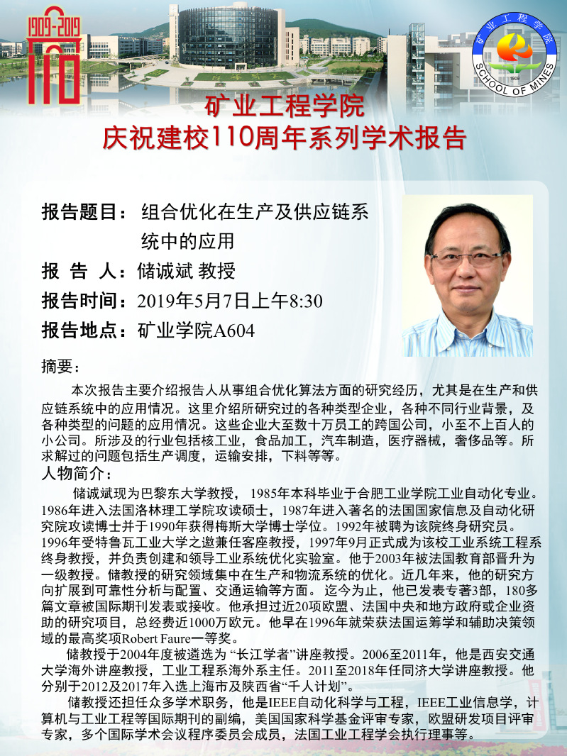 学术报告:组合优化在生产及供应链系统中的应用