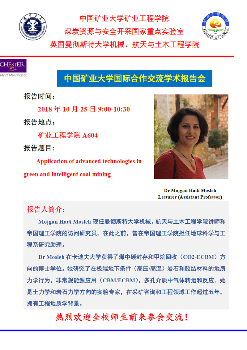 学术会议 熟女av - 学科动态 - 学术会议 - 正文 学术报告:Application of advanced technologies in green and intelligent coal mining 作者:董成亮浏览:时间:2018-10-22 新闻来源:熟女av 摄影: 责任编辑: 审核: