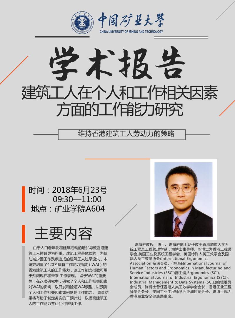 学术会议 熟女av - 学科动态 - 学术会议 - 正文 学术报告:建筑工人在个人和工作相关因素方面的工作能力研究 作者:董成亮浏览:时间:2018-06-13 新闻来源:熟女av 摄影: 责任编辑: 审核: