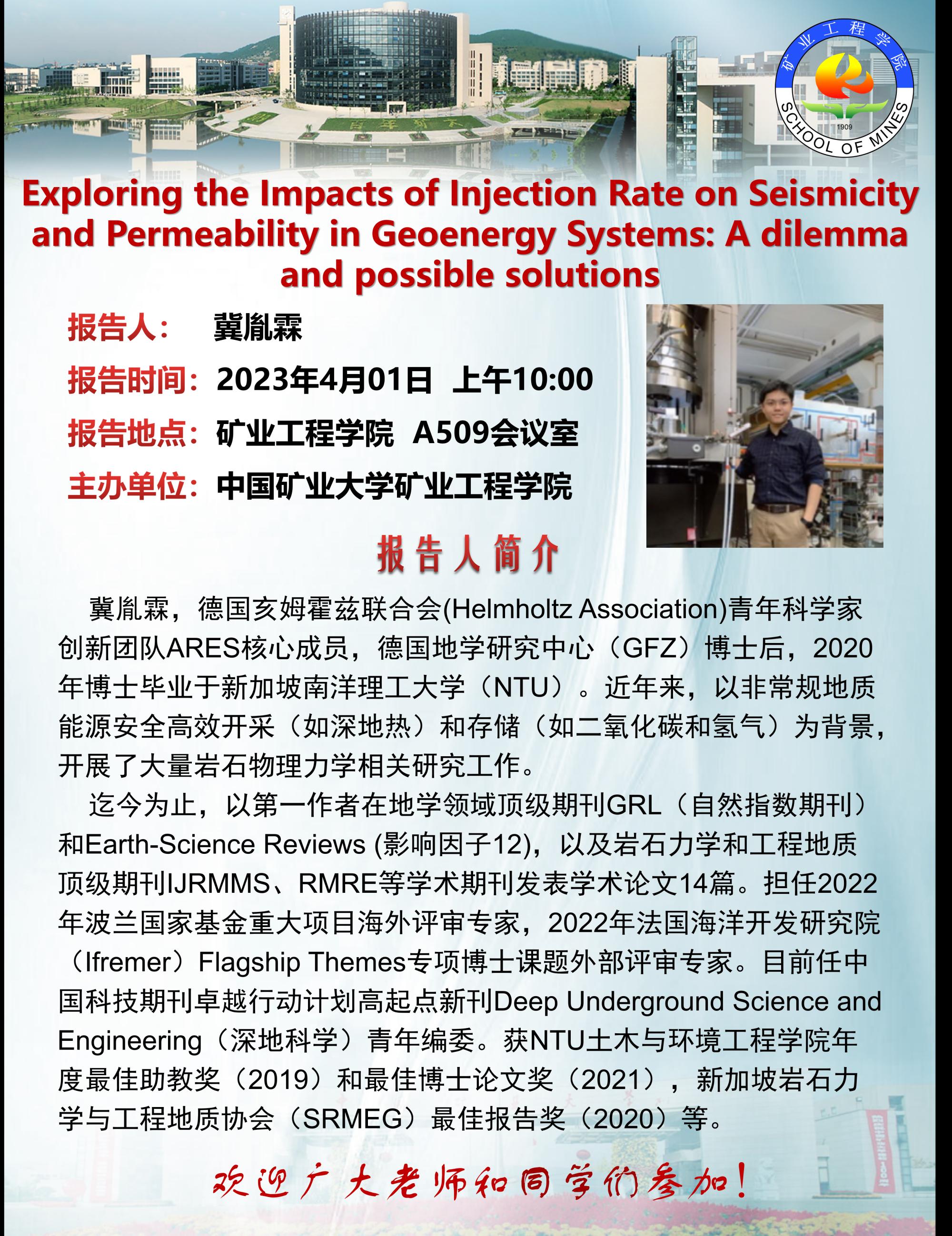 学术会议 熟女av - 学科动态 - 学术会议 - 正文 Exploring the Impacts of Injection Rate on Seismicity and Permeability in Geoenergy Systems: A dilemma and possible solutions 作者:办公室新闻发布浏览:时间:2023-03-30
