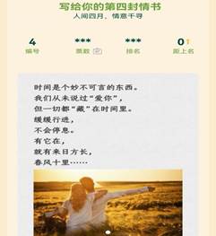 举办了“人间四月,情意千寻”情书大赛活动,给疫情影响下的生活带来点点温暖。