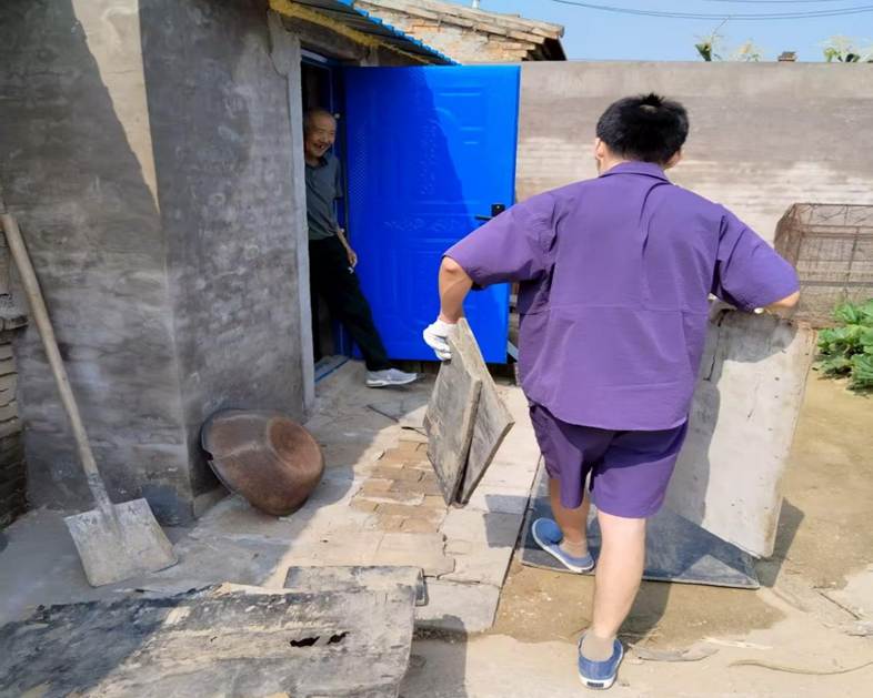 “志愿服务” 暑期社会实践团队在山西省朔州市朔城区祝家庄村,协助村委会开展包括危房改造工程、村民日常生活走访等工作。