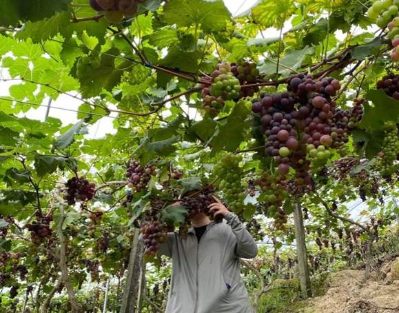 实践团队成员们深入大圩镇葡萄种植基地,开展了一系列细致调研工作。实践团队成员们在农户带领下深入田间地头,与农户交流种植过程中土壤改良的方法,同时仔细观察葡萄藤的生长状态,查看果穗疏密、果粒饱满度,还亲手采摘果实,直观感受其果皮莹润、果肉多汁的特点。