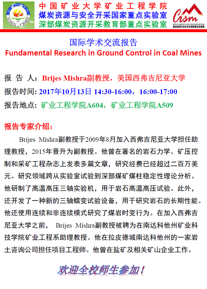基层动态 熟女av - 党群工作 - 基层动态 - 正文 国际学术交流报告:Fundamental Research in Ground Control in Coal Mines 作者:系统管理员浏览:时间:2017-10-09 新闻来源:熟女av 摄影: 责任编辑: 审核: